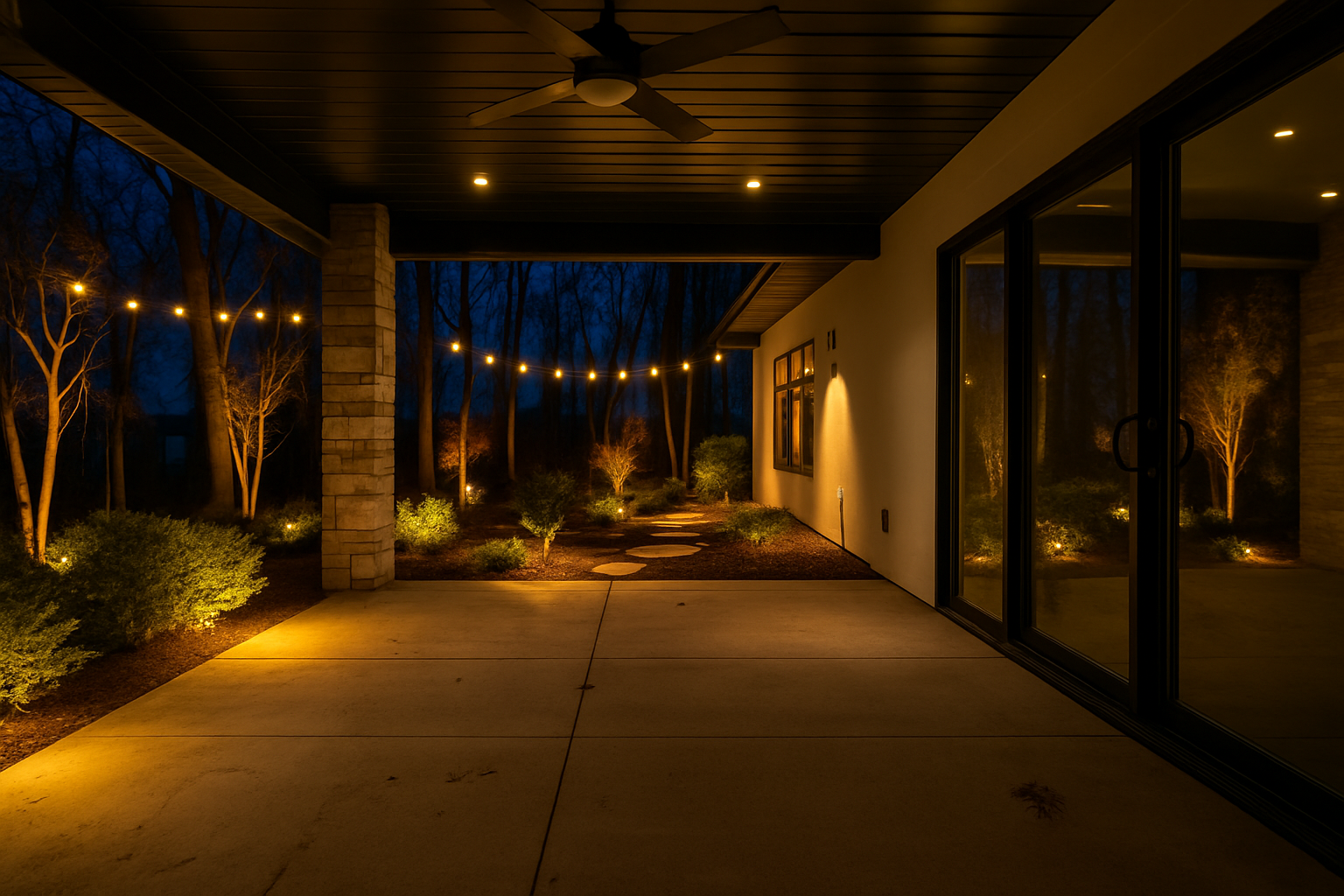 Every render can become a client-ready proposal. Your company name and logo, the before/after comparison, lighting package details, and space for pricing notes — all in a polished PDF you can email or show on your iPad.